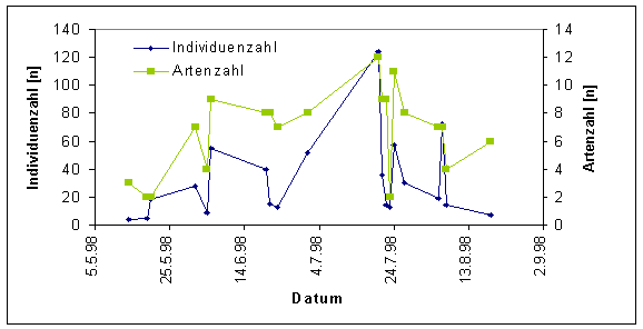 ergab keine Signifikanz. Da die Art nur auf zwei Flächen nachgewiesen