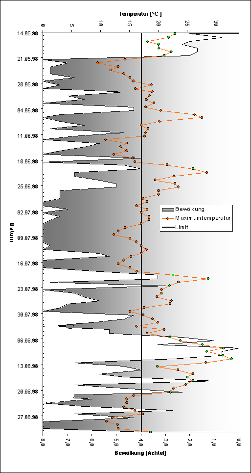 von Maximumtemperatur und Bewölkung (nach Daten von: Deutscher Wetterdienst 1999) |