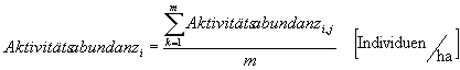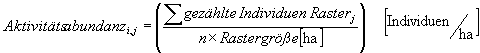 1 : Aktivitätsabundanz der Arti pro ha im Rasterj